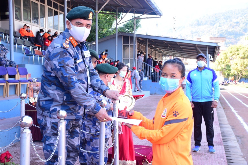 काठमाडौं । सशस्त्र प्रहरी महानिरीक्षक (आईजी) शैलेन्द्र खनालले सशस्त्र प्रहरी बल, नेपाल प्रधान कार्यालयमा आयोजना गरिएको ‘सशस्त्र प्रहरी महानिरीक्षक कप-२०७८’ को शुक्रबार विशेष कार्यक्रमकाबीच समापन गरे । सो प्रतियोगितामा ३ स्वर्ण, १ रजत र १ कास्य पदकसहित कुल ५ पदक प्राप्त गरी राष्ट्रिय सशस्त्र प्रहरी बल प्रशिक्षण प्रतिष्ठान मातातिर्थ बिजयी भएको छ ।